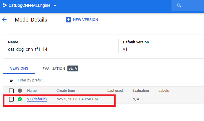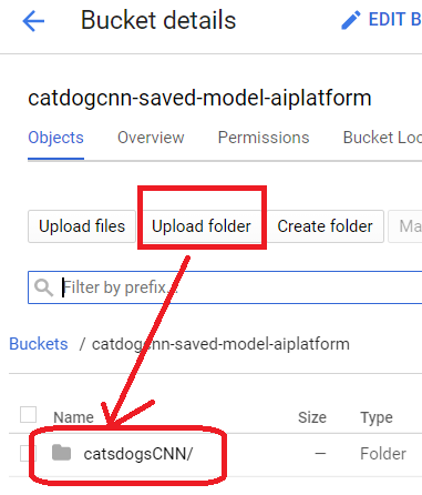 STEP 3: in newly created bucket upload the SavedModel you previously created --here is a tensorflow 1.14 python 3.5 CatDog CNN model