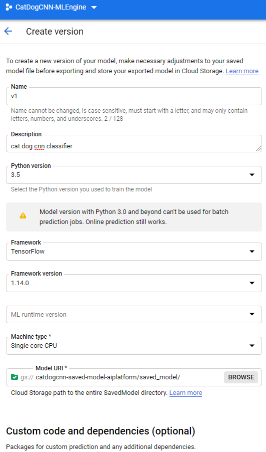>>>NOTE: it seems that AI Platform does not necessarily support the latest Tensorflow version!!!