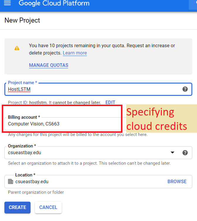 ASSUMES: you have google cloud account and have setup your credits (given to you in this class)