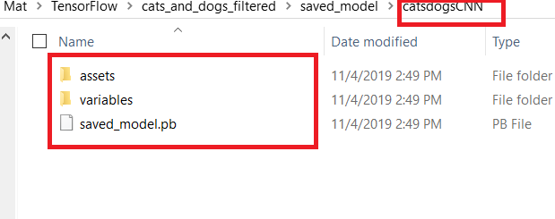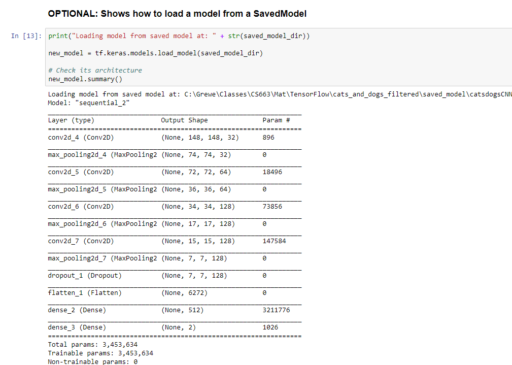 # Save the entire model as a SavedModel. saved_model_dir = os.path.join(BASE_DIRECTORY, 'saved_model\catsdogsCNN') !mkdir -p saved_model_dir model.save(saved_model_dir) |