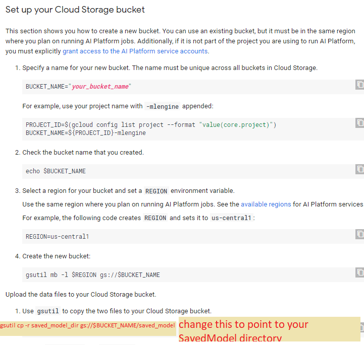 STEP 5: Follow instructions OR these more specific instructions to Deploy your saved Model into your Google Cloud Project