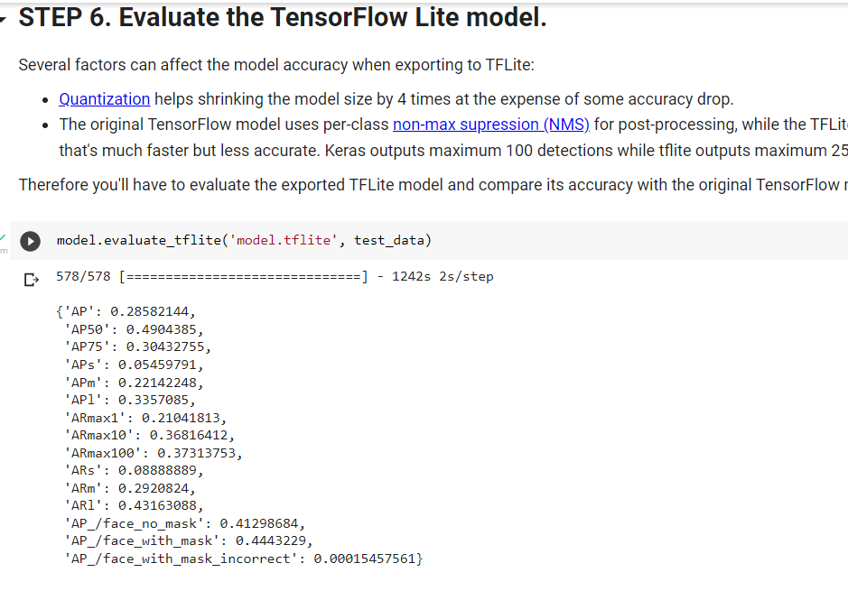 NEW (2022) ALTERNATIVE TO ABOVE - Using TensorFlow Lite Model Maker : It works by loading the tflite-model-maker python library (new 2022). so rather than using the colabs in the covidID_mask github, you could use the data from it along with the instructions on how to train a TFLite using this new Tensorflow Lite Model Maker.